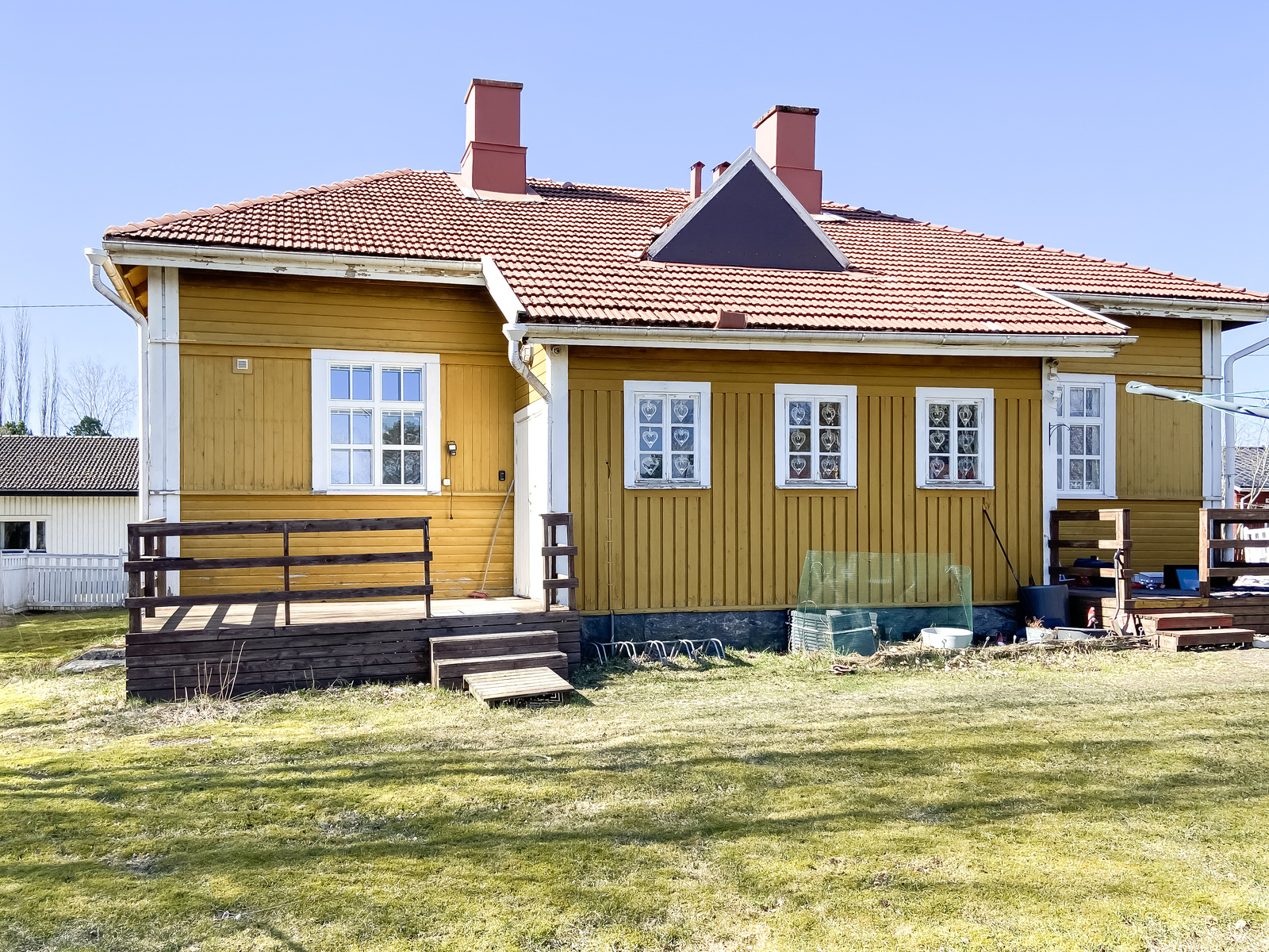 | Tiedossa olevat tulevat korjaukset/remontit | Katto on alkuperäisessä kunnossa ja julkisivu kaipaisi korjausta ja maalausta. Pihalla sijaitseva kylmä talousrakennus on huonossa kunnossa. Taket är i ursprungligt skick och fasaden skulle behöva repareras och målas. Den kalla ekonomibyggnaden på gården är i dåligt skick. |