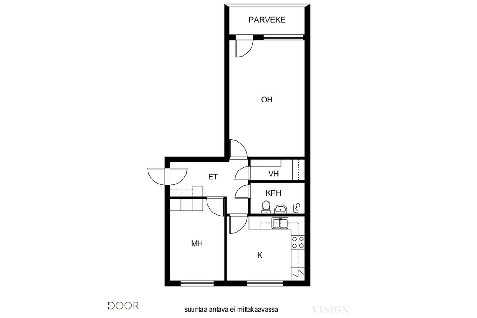 | Huoneistoselitelmä | 2h, k, kph, vh, lasitettu parveke |