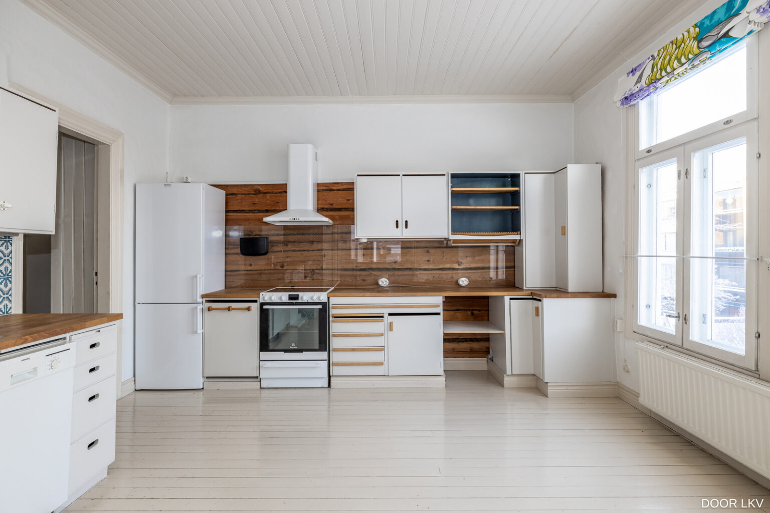 Remonttien yhteydessä vanhan hirsitalon tunnelmaa on taidokkaasti säilytetty. Vanhat hirsiseinät on jätetty näkyville, lankkulattia on säästetty ja olohuoneessa sekä makuuhuoneessa on tunnelmalliset ja toimivat kakluunit. Tässä erittäin tilavassa 71,9 m²:n kaksiossa on makuuhuone, olohuone, keittiö sekä kylpyhuone saunalla. Taloyhtiöllä on oma tontti ja lämmityskustannukset sisältyvät vastikkeeseen.