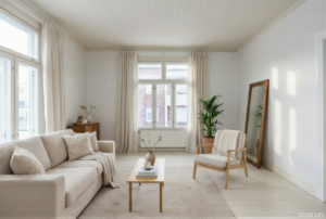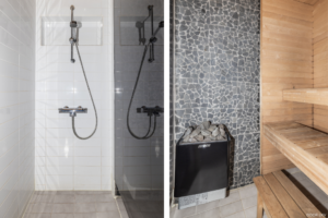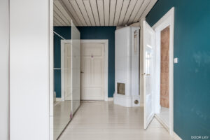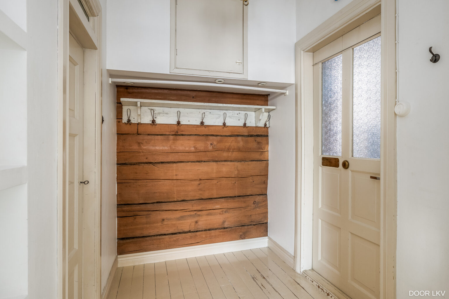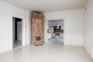 Vid renoveringarna har man bevarat trähuskänslan med synliga stockväggar, plankgolv och stämningsfulla, fungerande kakelugnar i både vardagsrummet och sovrummet. Denna mycket rymliga tvåa om 71,9 m² består av sovrum, vardagsrum, kök samt badrum med bastu. Huset har egen tomt och värms med fjärrvärme som ingår i vederlaget.