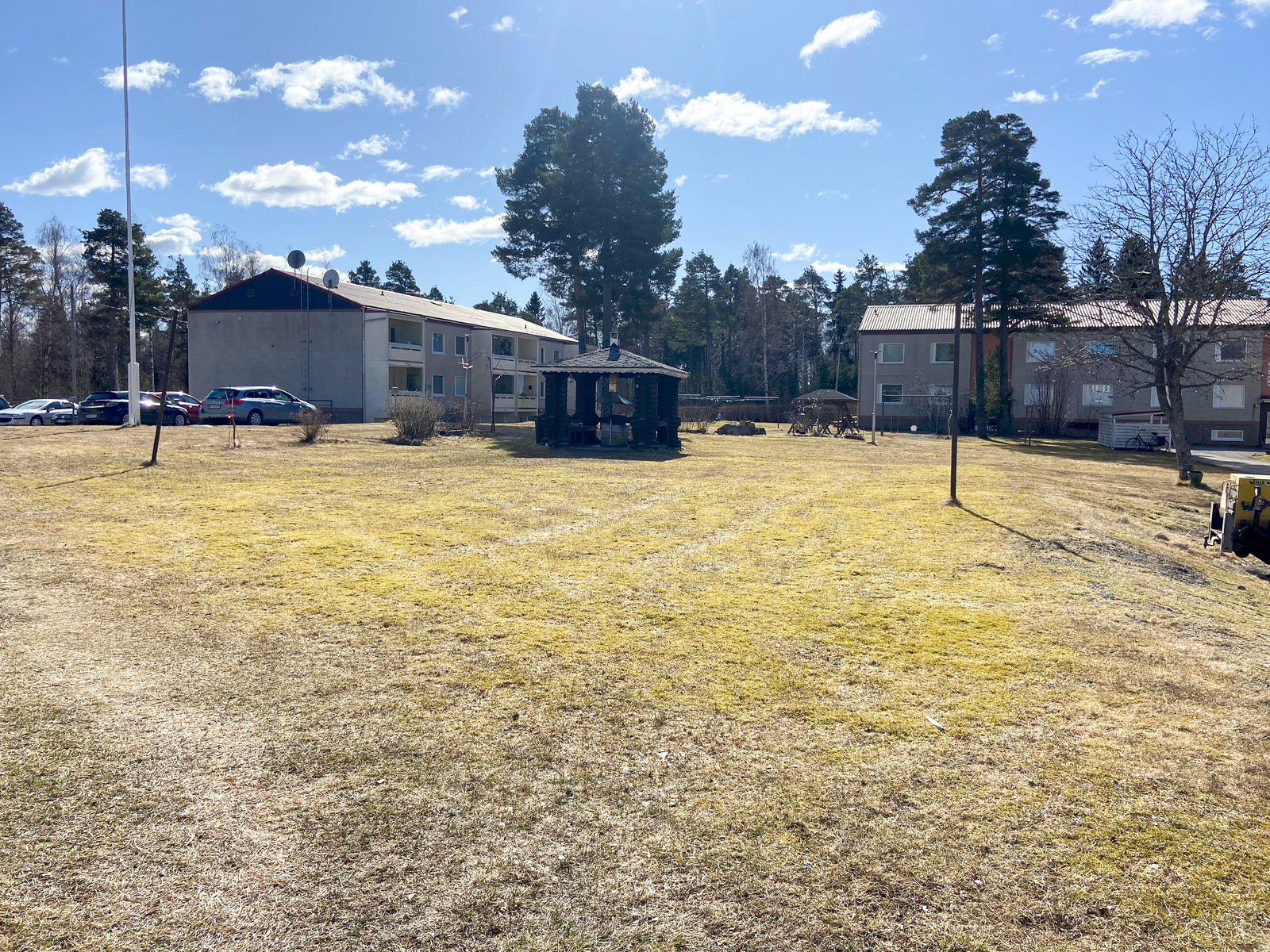 Bostadsbolaget äger tomten och erbjuder en trivsam boendemiljö med bland annat odlingsmöjligheter och gemensam grillkåta. Parkeringsplatser finns att hyra på gården och i närheten finns både matbutik och bussförbindelse.