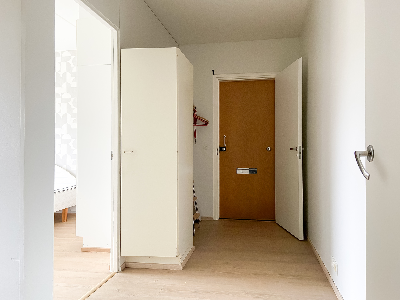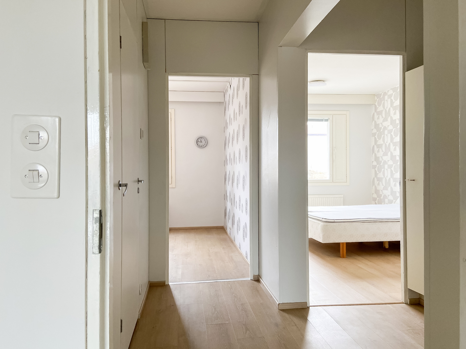 | Tehdyt korjaukset | KYLPYHUONE 2019 Koko kph. purettu sekä uusittu, vesieristys, laatoitus lattia + seinät. Alaslaskettu katto n. 5cm, valaistus sekä kaapistot uusittu. Lattialämmitys laitettu. KEITTIÖ 2020 Kaapistot uusittu, vesikalusteet uusittu. Uusi jääkaappi/pakastin sekä sähköhella. Valaistusta uusittu. Seinät maalattu ja osin tapiseerattu. Vinyylilankku laitettu. OLOHUONE, MAKUUHUONE ETEINEN JA PARVEKE 2026 Lattiat uusittu laitettu vinyylilankku. Olohuoneen pitkät seinät tapiseerattu sekä päätyseinät maalattu. Makuuhuone maalattu sekä yksi pitkäseinä tapiseerattu. Komero ja parveke maalattu. |