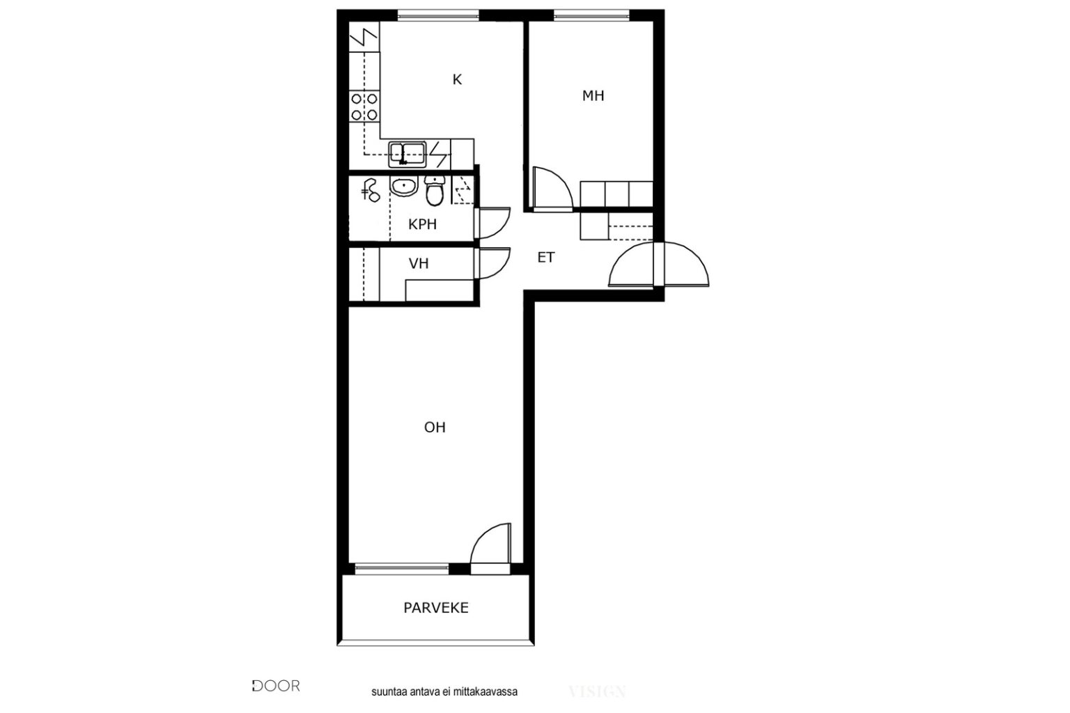 | Huoneistoselitelmä | 2h, k, kph, vh, lasitettu parveke |