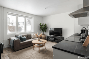 Bostaden och övriga lägenheter samt utrymmen i husbolaget har renoverats under åren 2019-2020. Planlösningen är både funktionell och inbjudande, med sociala ytor i den ena delen av bostaden och sovrum i den andra. Från bostadens entré möts du av ett ljust och öppet vardagsrum i kombination med kök och matplats, som skapar en trivsam helhet och effektivt utnyttjade kvadratmeter. I anslutning till sovrummet finns ett rymligt badrum samt ett praktiskt klädrum som erbjuder gott om förvaringsmöjligheter.