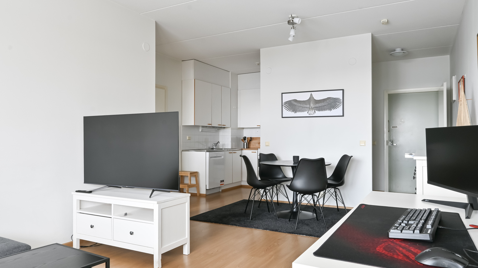 Sovrummet är rymligt och den egna bastun i badrummet garanterar avslappnande stunder till hektiska vardagen. Lägenhetens har ett utmärkt läge, nära Brändö-skolor och andra bekvämligheter, vilket gör den till det perfekta valet både för studerande och arbetande. För investeraren är bostaden redan uthyrd med ett tillsvidare gällande hyresavtal (hyran 690€/mån).
