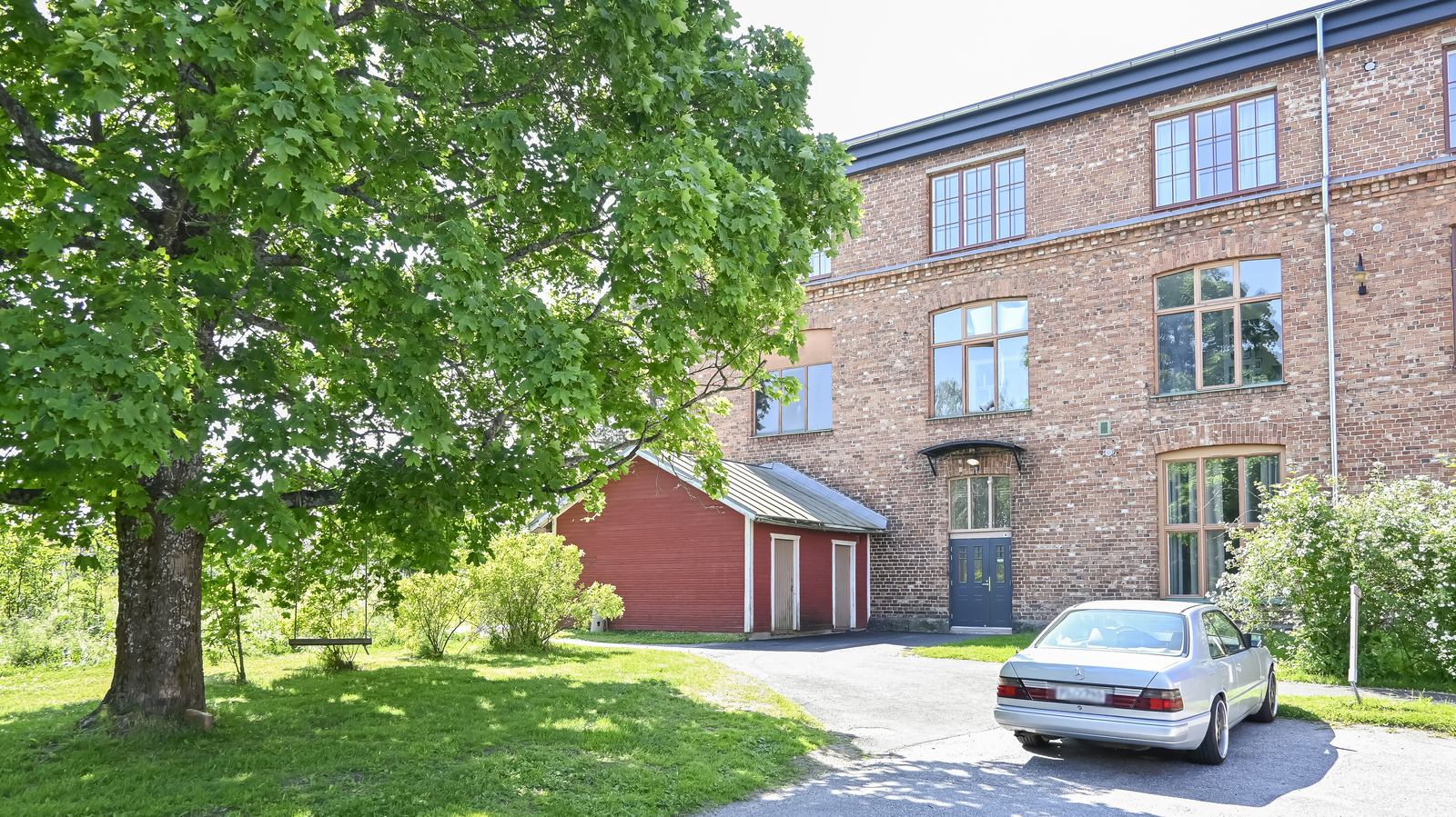 Lägenheten är belägen i det anrika Aino Lindemans före detta nätfabrik, som omvandlades till bostäder år 1999. Den tegelförsedda fasaden, de nyligen förnyade fabriksinspirerade fönstren och de breda fönsterbrädorna bevarar byggnadens ursprungliga karaktär och skapar en varm och hemtrevlig stämning med industriell charm.