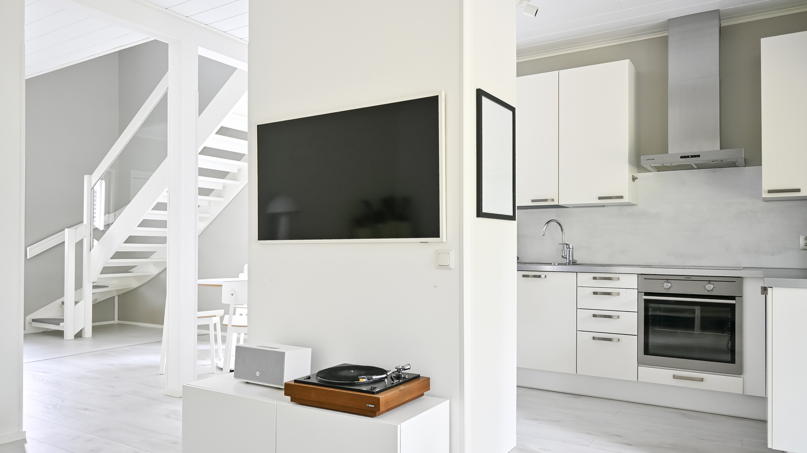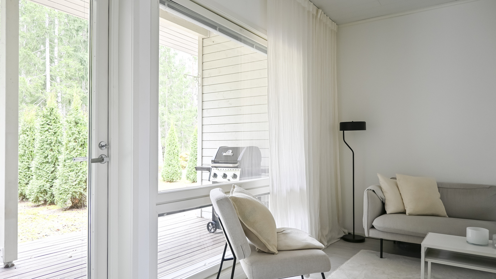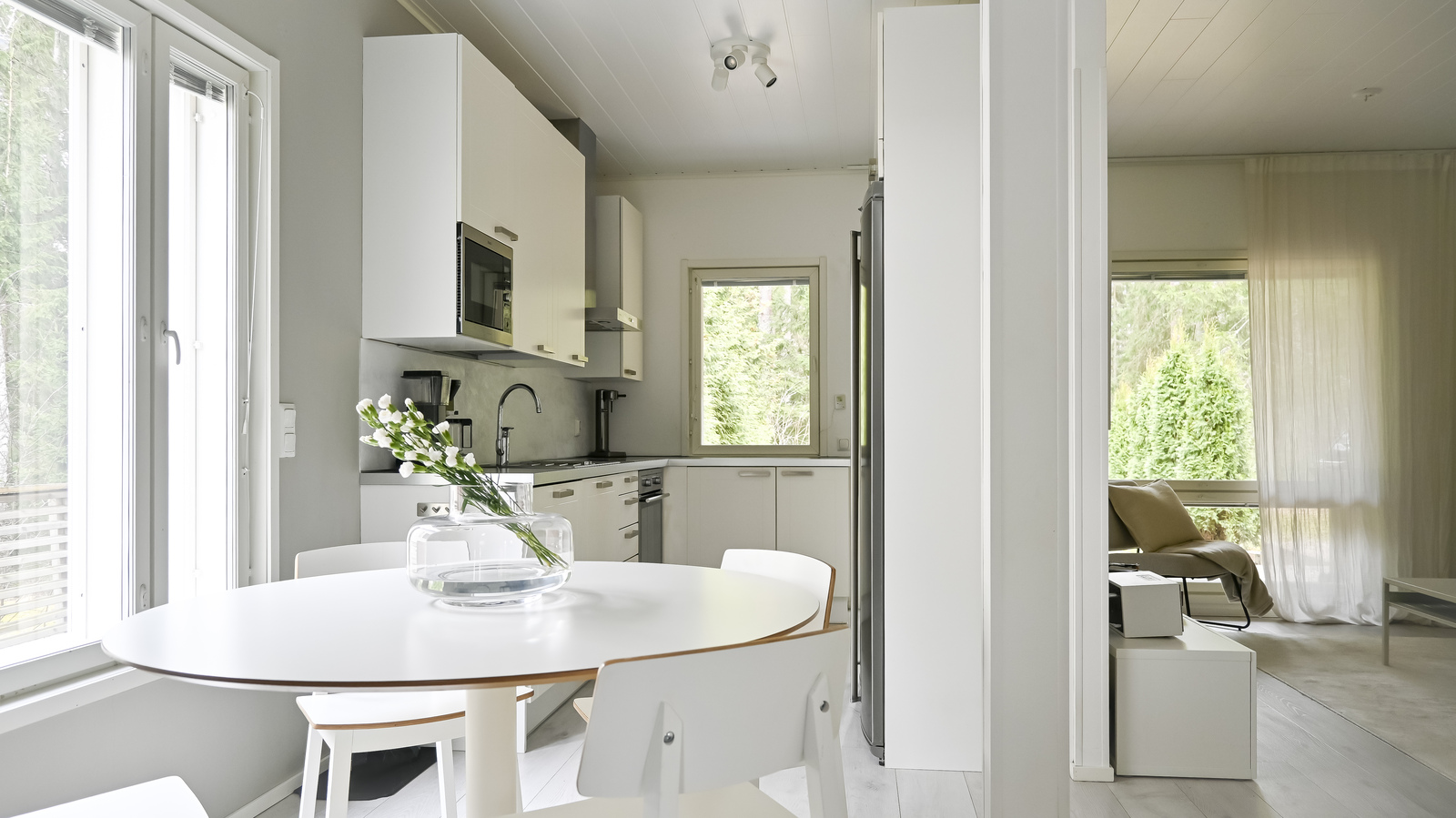 Asunnon sisäänkäynti avautuu tilavaan eteiseen, jossa on säilytystilaa sekä tilava kylpyhuone, jossa on wc, suihku ja sauna. Asuintilat muodostuvat valoisasta ja avoimesta kokonaisuudesta, jossa keittiö, ruokailutila ja olohuone yhdistyvät. Olohuoneesta on käynti isolle, aurinkoiselle terassille ja suojaisalle pihalle, jota ympäröi vehreä luonto – täydellinen paikka kesäiltojen grillailuun tai rauhallisiin kahvihetkiin.