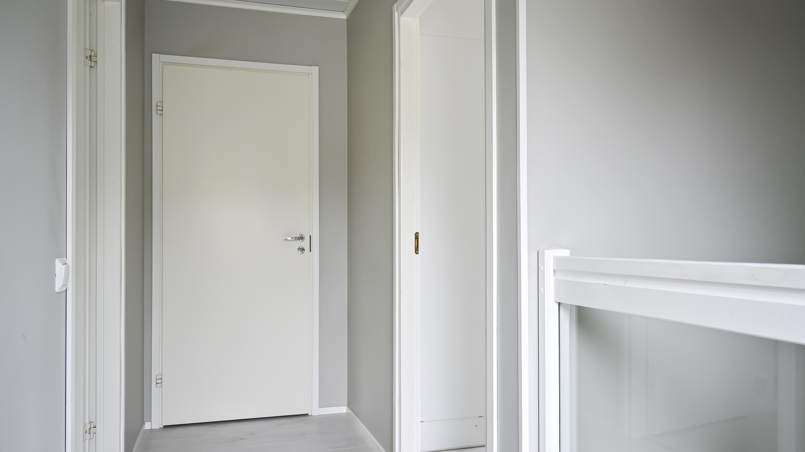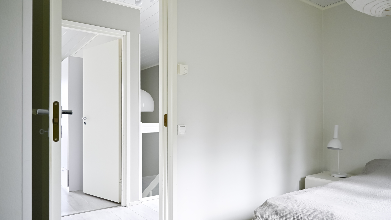 Kauniit portaat lasikaiteella johtaa asunnon toiseen kerrokseen. Täällä on kaksi tilavaa makuuhuonetta, joista toinen on varustettu vaatekaapeilla ja toisessa on walk-in-closet. Yläkerrassa on myös käytännöllinen yhdistetty kodinhoito- ja kylpyhuone, jossa on suihku ja wc.