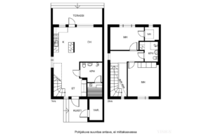 | Huoneistoselitelmä | 3h, k, 2 x kph, s, vh, terassi, varasto, ak, ap |