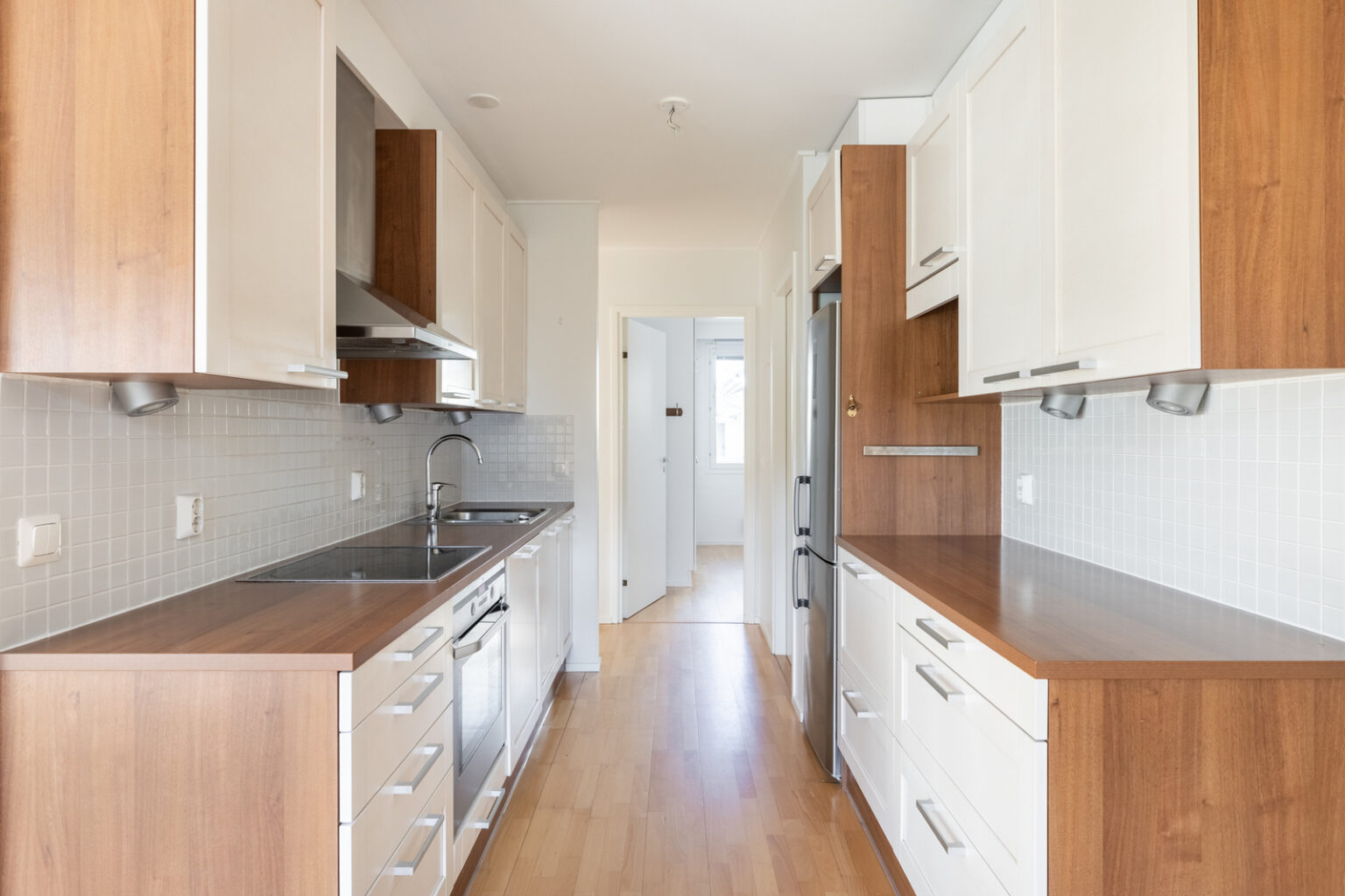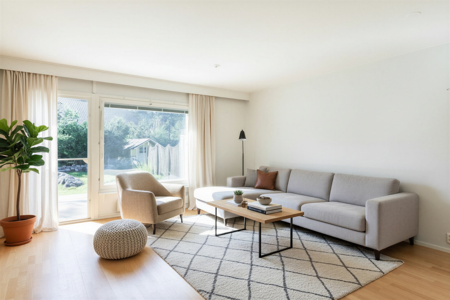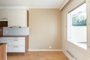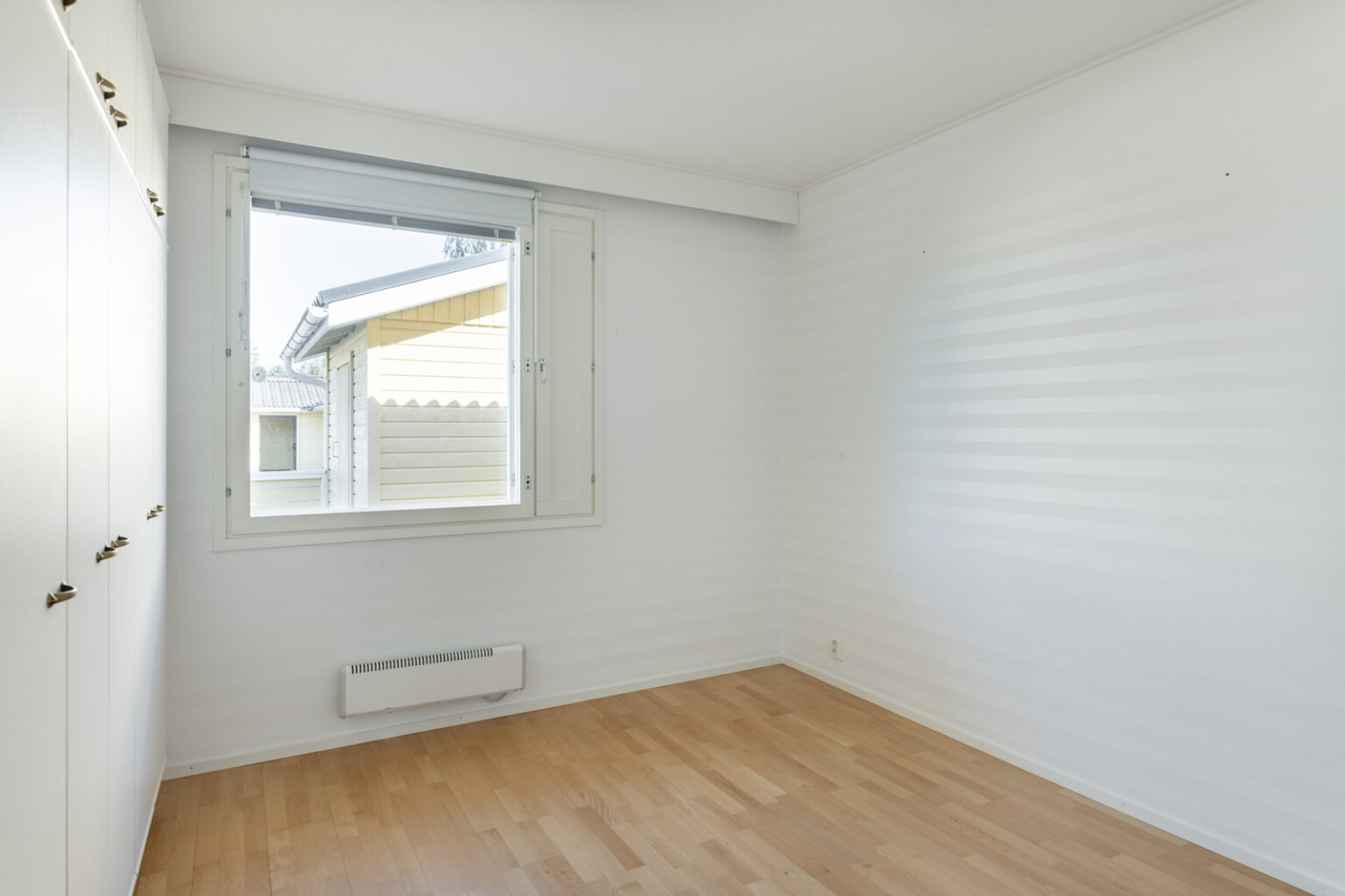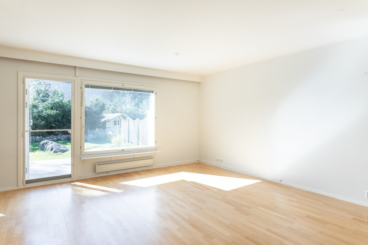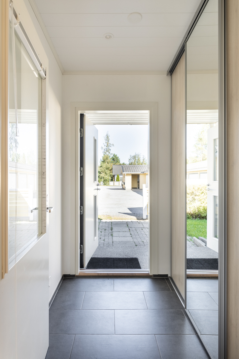 Kodikas rivitaloasunto, josta avautuvat vehreät näkymät takapihalle olohuoneen ja keittiön suurista ikkunoista. Asunnon 80 m² on suunniteltu tehokkaasti ja käytännöllisesti: keittiö ja ruokailutila yhdistyvät olohuoneeseen, lisäksi on kaksi makuuhuonetta, kylpyhuone saunoineen, kodinhoitohuone sekä erillinen wc. Kylpyhuoneen lattian maalipinnassa on havaittavissa jonkin verran hilseilyä, mikä on huomioitu hinnassa.