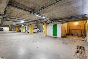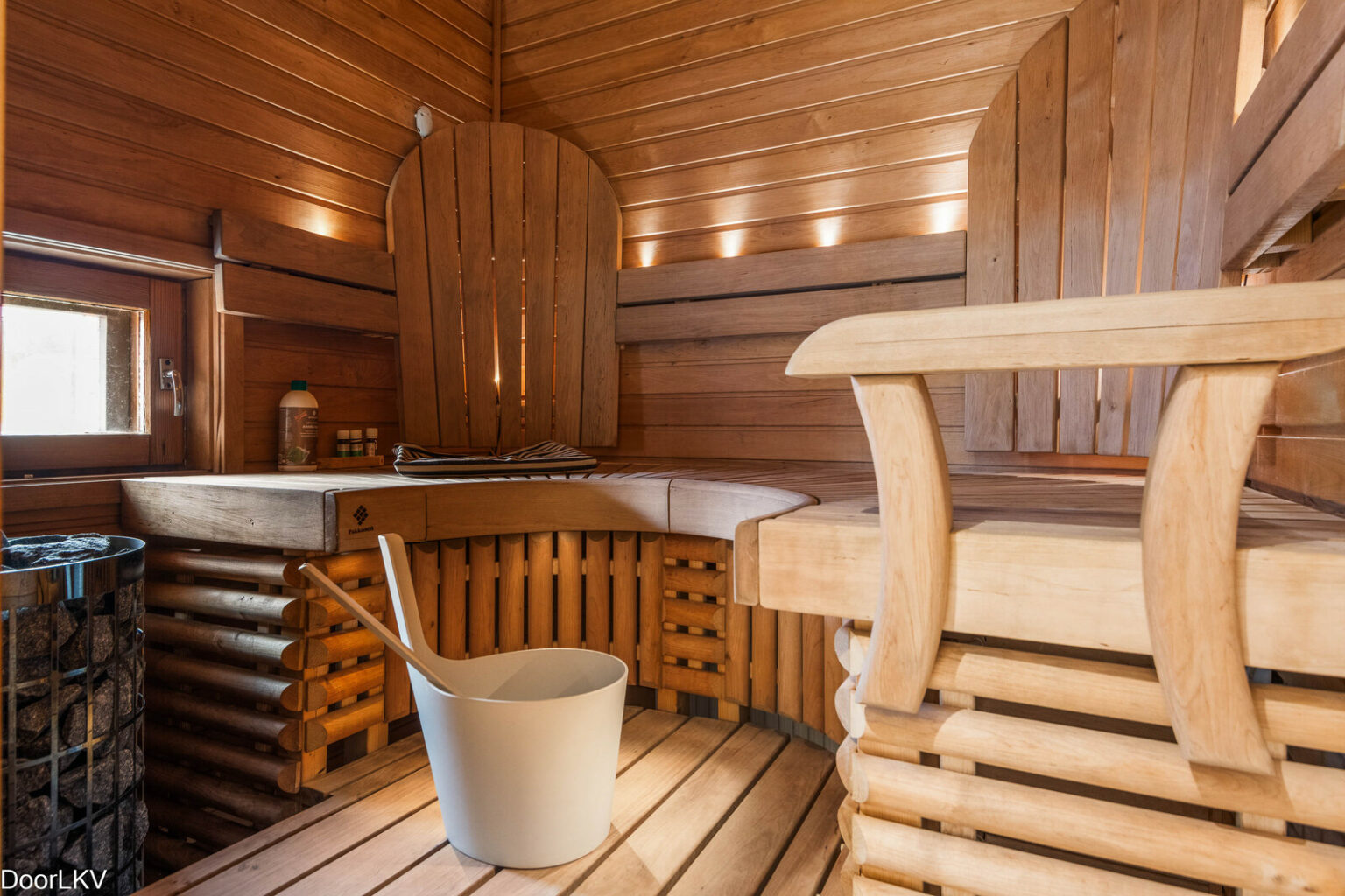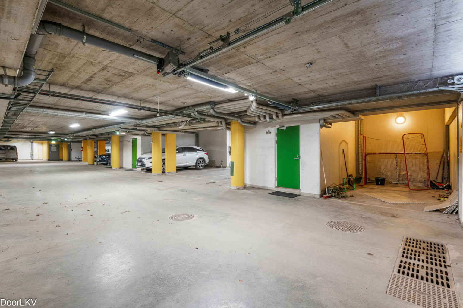 I nedre våningen finns ett högt och mångsidigt utrymme som anpassar sig efter dina behov, som arbetsrum, gästrum eller en lugn sällskapsyta. Här finns även ett rymligt klädvårdsrum, gott om förvaringsutrymme samt direkt förbindelse till bilhallsplatsen. Parkeringsrutan kan köpas med separata aktier till priset 15 000 euro.
