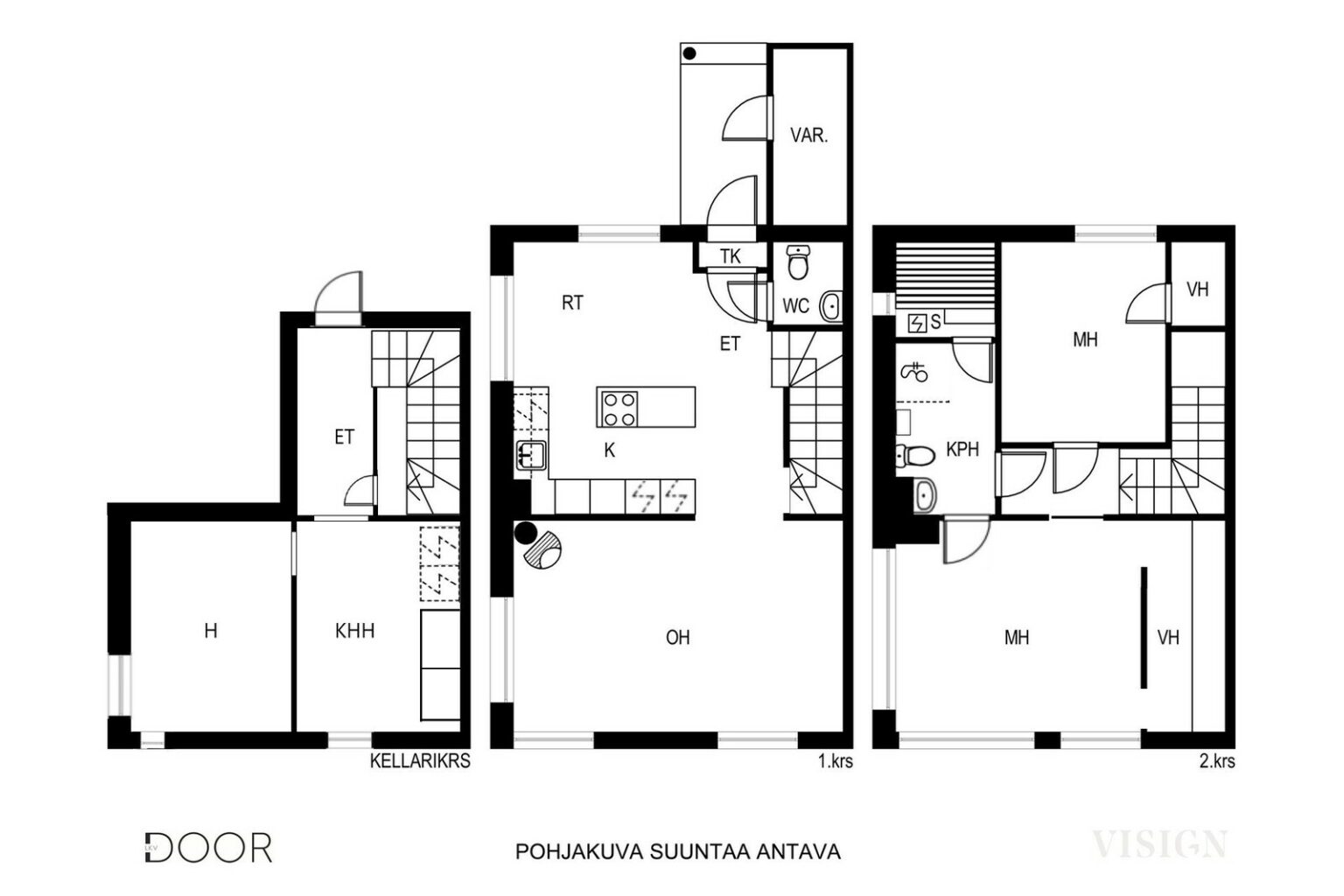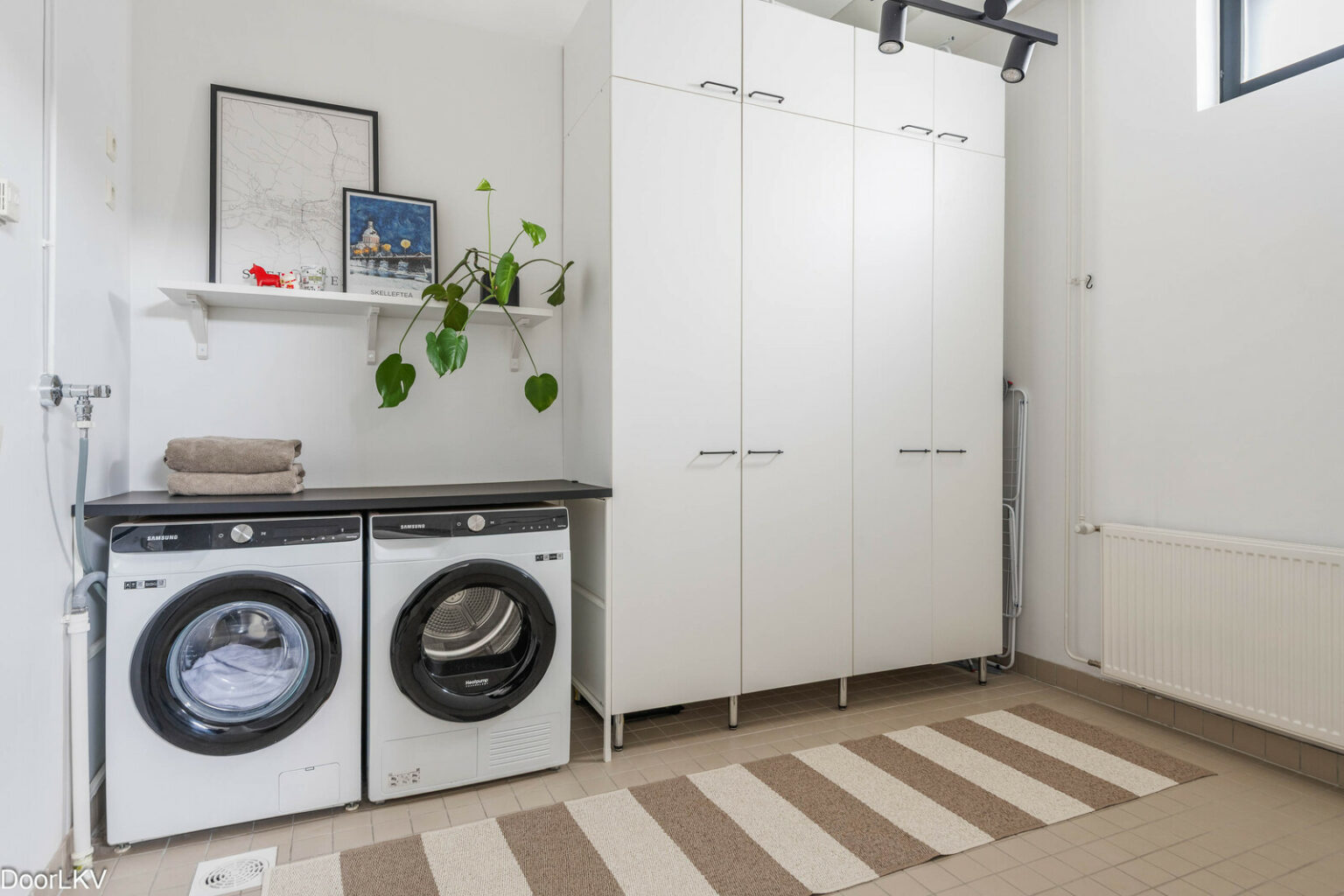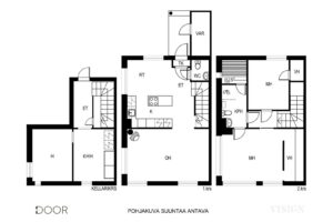 | Lisätietoja pinta-alasta | Kellarikerroksessa (29,5) on asunnon kodinhoitohuone sekä lisätila, jossa on korkea katto ja jota voi käyttää työ- tai makuuhuoneena. Kellarikerroksessa on myös varastotilaa sekä suora sisäänkäynti autohalliin. |