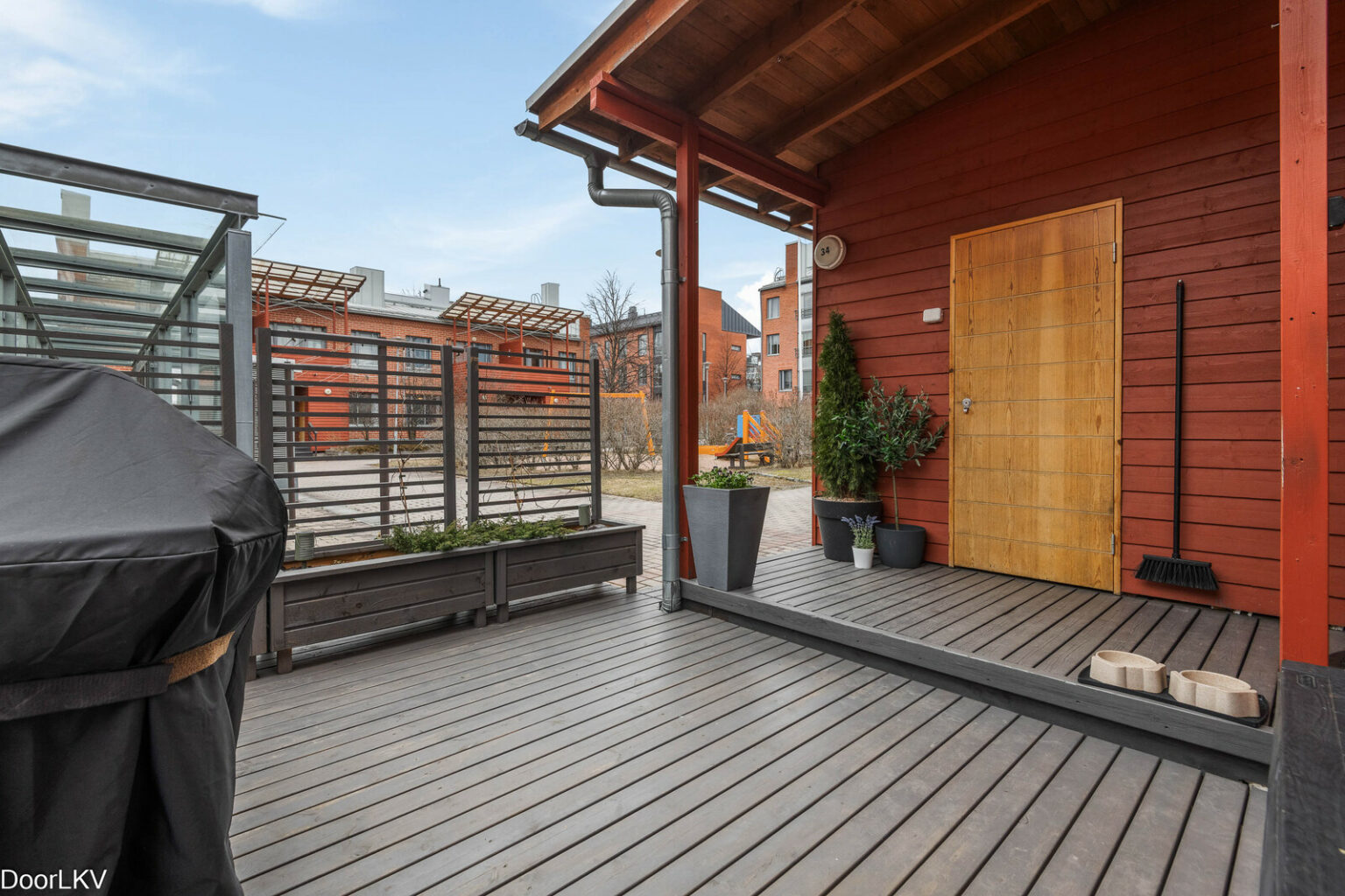Tässä kodissa yhdistyvät harvinaisella tavalla merellinen maisema, oma rauha ja urbaani sijainti. Kokonaisuutta täydentävät arjen luksusta tuovat yksityiskohdat: oma sauna, suojaisa terassi sekä suora kulku autohalliin.