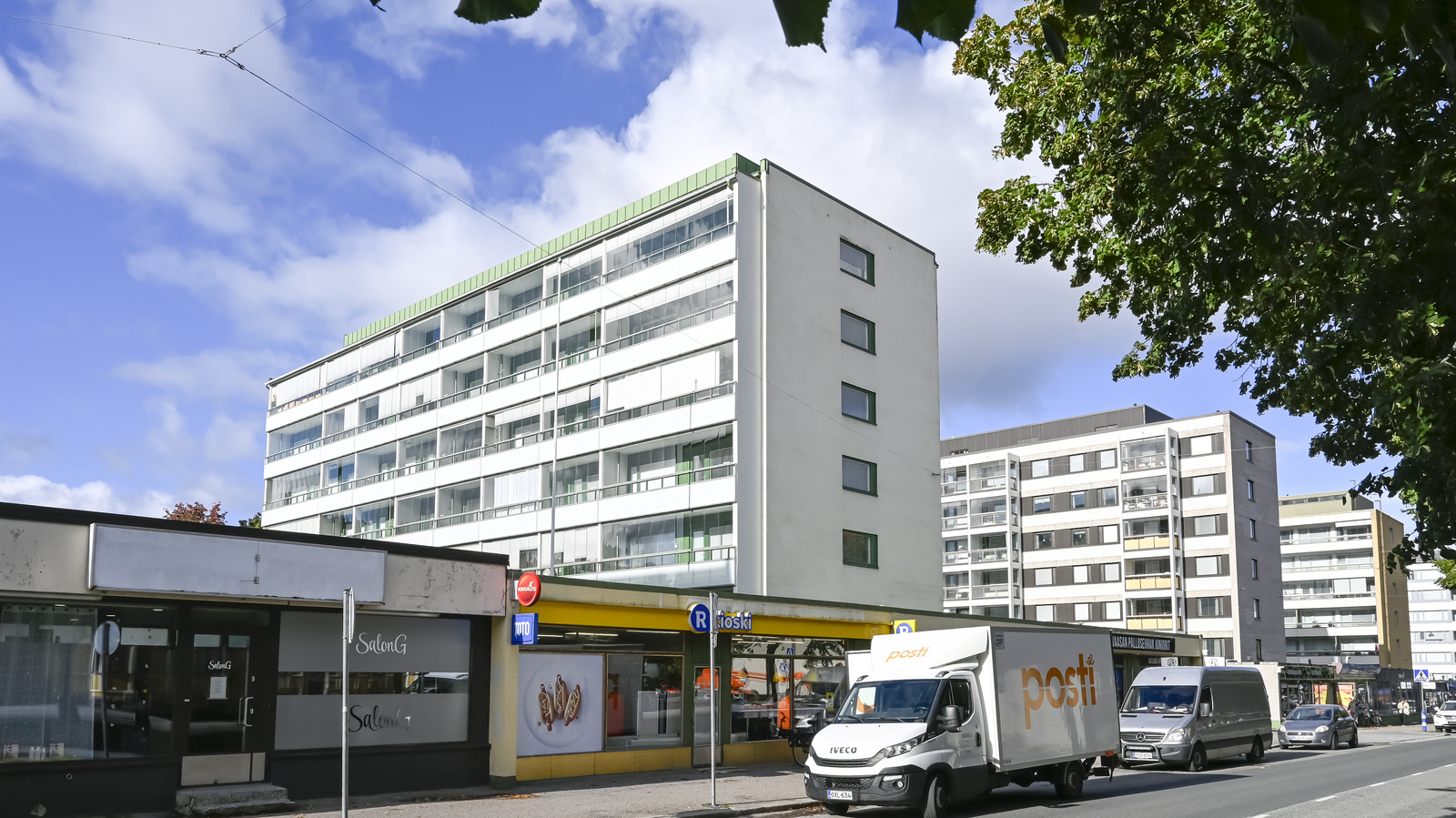 Tilava päätyasunto, josta on näkymät kolmeen eri ilmansuuntaan aivan palveluiden äärellä. Hyvä ja väljä pohjaratkaisu. Tilava olohuone, johon mahtuu myös ruokapöytä. Olohuone on yhteydessä kahteen makuuhuoneeseen, joista toisessa on pariovet. Asunnossa on tilavat liukuovikaapistot. Tilavasta eteisestä on käynti kodin viehättävään keittiöön.