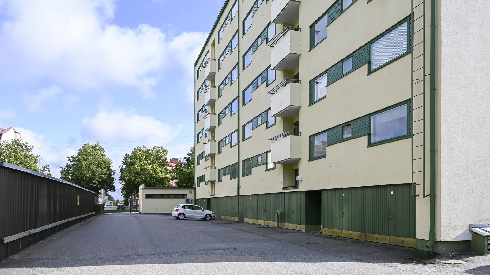 Rymlig gavelbostad med utsikt åt tre olika väderstreck, alldeles intill service. Välplanerad och rymlig planlösning. Stort vardagsrum med plats för matbord. Vardagsrummet är i kombination med två sovrum, varav ett är försett med dubbeldörrar. I bostaden finns rymliga garderober med skjutdörrar. Den generösa tamburen leder in till hemmets charmiga kök.