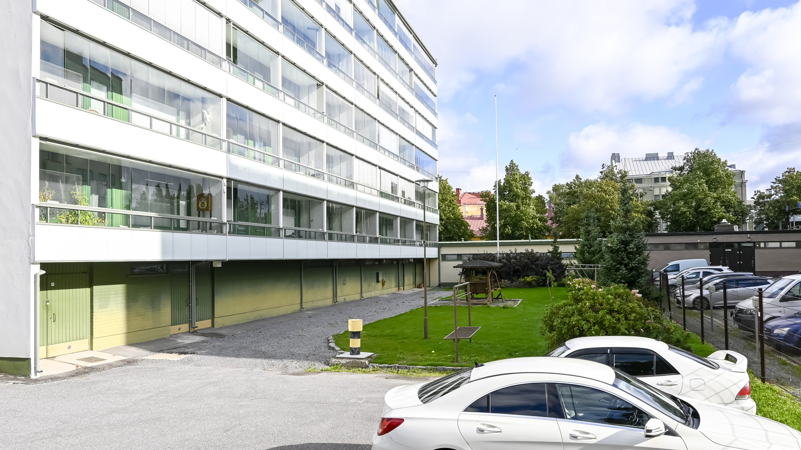 Huset ligger i hjärtat av Vasa centrum och är idealiskt för den som värdesätter närhet till service. När du kliver ut genom din ytterdörr har du omedelbart tillgång till alla centrums tjänster.