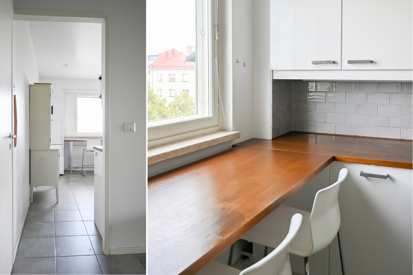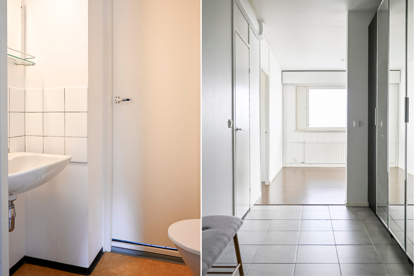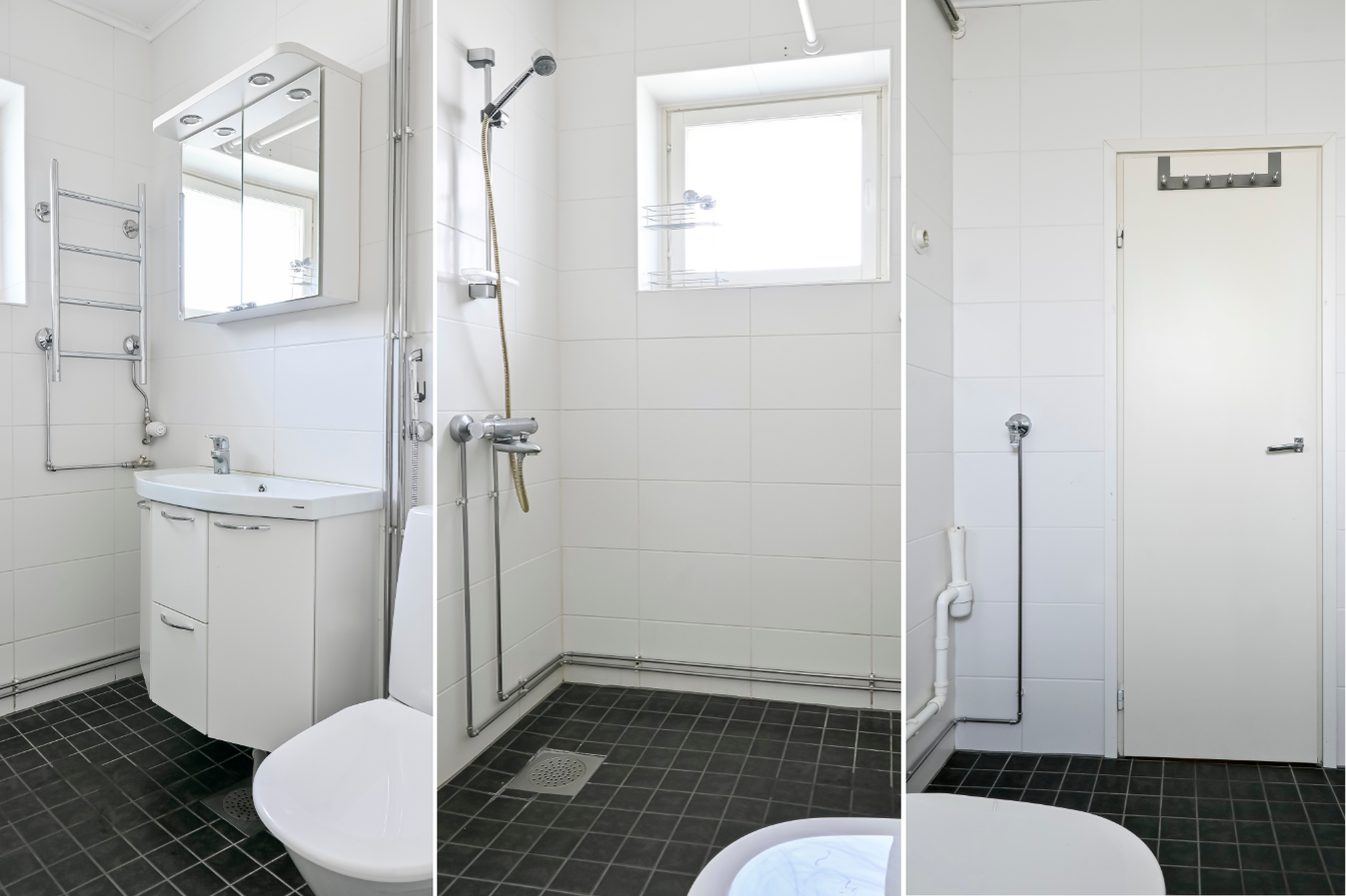 Bostaden har ett modernt badrum samt ett kök som har förnyats i samband med övriga renoveringar i bostaden. Dessutom finns en separat wc. Bostaden ligger på femte våningen och bjuder på trevlig stadsutsikt. Den rymliga inglasade balkongen bidrar med ytterligare trivsel.