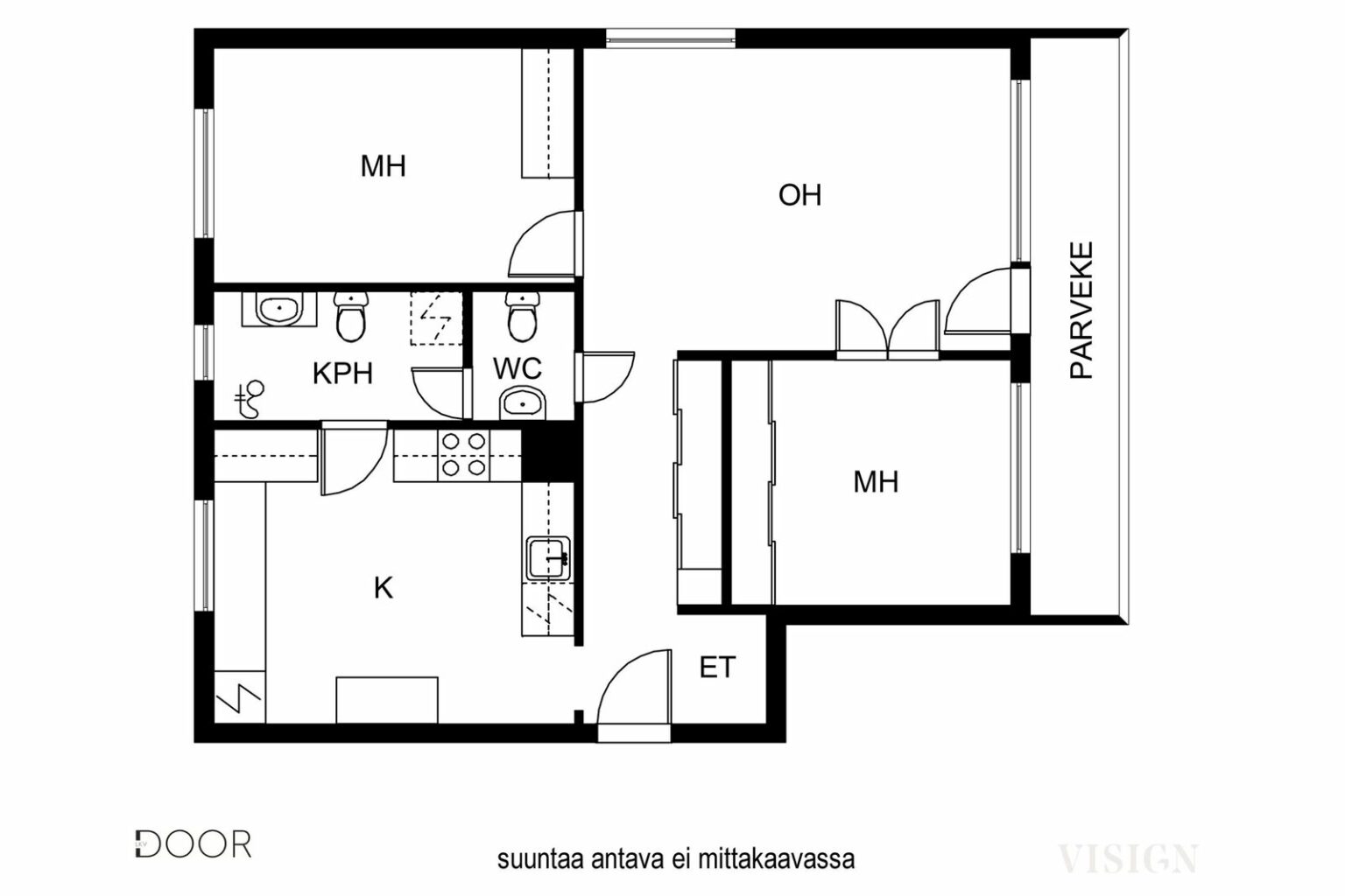 Parveke | Asunnossa on parveke |