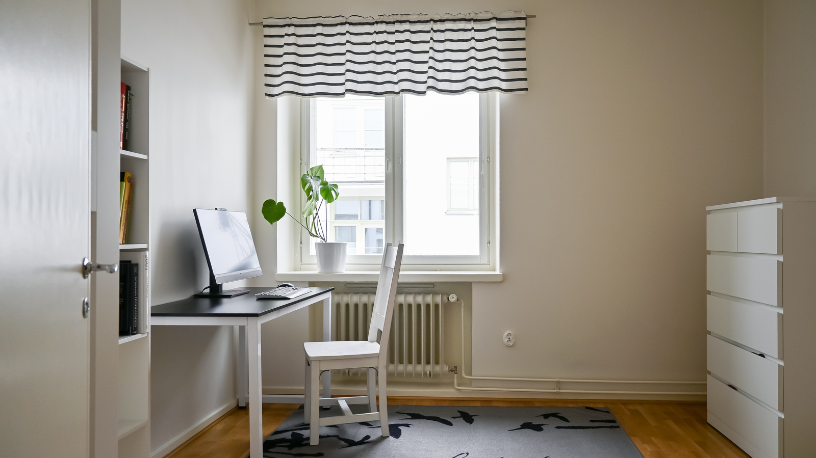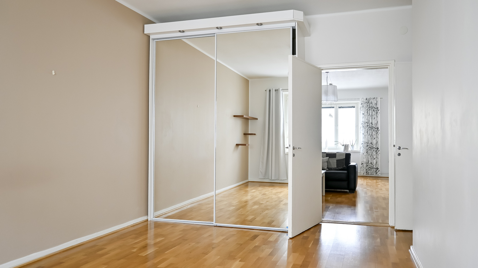 • Asunnossa on kaksi makuuhuonetta, joista toinen on tilava ja varustettu liukuovikaapilla. Lisäksi on ns. ”piikarhuone”, jota voidaan käyttää vaatehuoneena tai pienempänä makuuhuoneena.