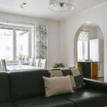 • Olohuone on tilava ja länteen päin. Siellä on tilaa ruokapöydälle, ja se on avoimessa yhdistelmässä keittiön kanssa.