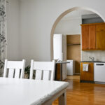 • Keittiö on kompakti ja sijaitsee yhteydessä ”piikarhuoneeseen”, samalla olohuoneessa on tilaa ruokapöydälle. Keittiössä on kaksi sisäänkäyntiä.