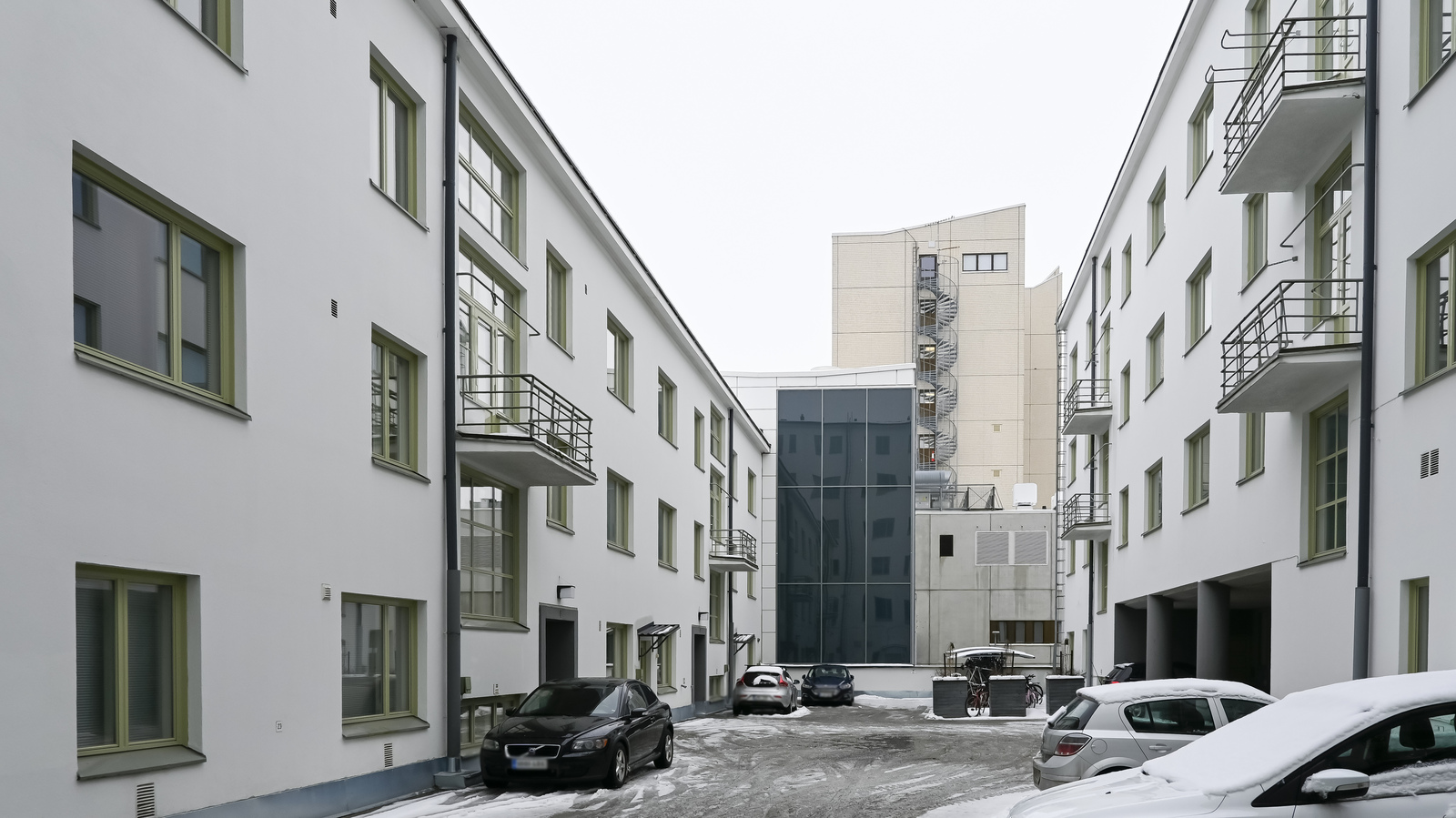 Ljus bostad mot väst på tredje våningen i husbolagets lugna innergård.