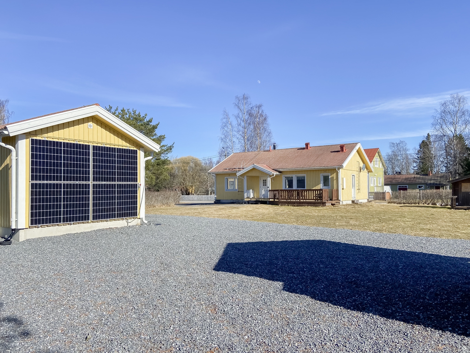 | Tehdyt korjaukset | 2023 Makuuhuoneiden pintaremontti ja kaikki väliovet uusittu. 2023 Maaparannustyöt, ulkorakennuksen ympäristö ja nurmikko. 2024 Nosto-ovi työtilaan, sähkökäyttöinen kaukosäätimellä. 2024 Pihavaja. 2024 Ulkorakennuksen maalaus. 2024 Aurinkopanelien asennus. 2024 WC-istuimet (2 kpl). 2024 Maaparannustyöt, piharakennusten väli ja länsipuolen oja. 2025 Poistoilmalämpöpumppu. 2025 Autotallin muutostyöt työtilaksi, lämpöeristys ja levytys. |