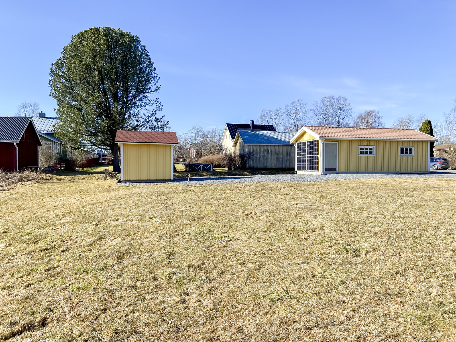 På gården finns stor potential t.ex. för den trädgårdsintresserade att förverkliga odlingsplaner. Helheten kompletteras av en rymlig terrass, en vedeldad bastu, en praktisk, varm ekonomibyggnad samt ett gårdsskjul.