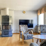 Detta hem utgörs av tre sovrum, ett rymligt vardagsrum med öppen spis som ligger i anslutning till köket och matplatsen, badrum med bastu och wc, ytterligare en separat toalett, samt ett praktiskt grovkök med egen ingång.