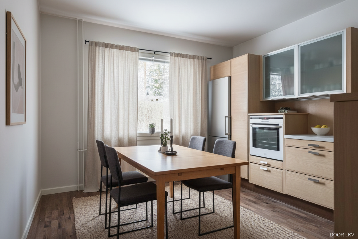 Tämä koti tarjoaa toimivan pohjaratkaisun ja runsaasti tilaa arjen sujuvuuteen. Tilava ja avara eteisaula säilytystiloineen tekee arjesta sujuvan. Uusittu keittiö tarjoaa runsaasti säilytys- ja työskentelytilaa. Asunnossa on kolme makuuhuonetta, viihtyisä olohuone, kylpyhuone, erillinen wc sekä parveke. Säilytystilaa tuo käytännöllinen vaatehuone.