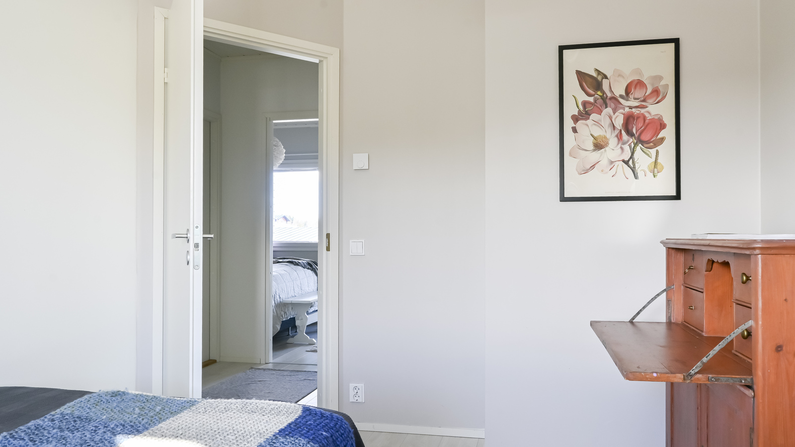 Bostaden har två badrum, ett på övre våning och ett på nedre plan, vilket gör vardagen smidig och bekväm. Planlösningen är både praktisk och luftig och ger gott om plats för både samvaro som avkoppling.
