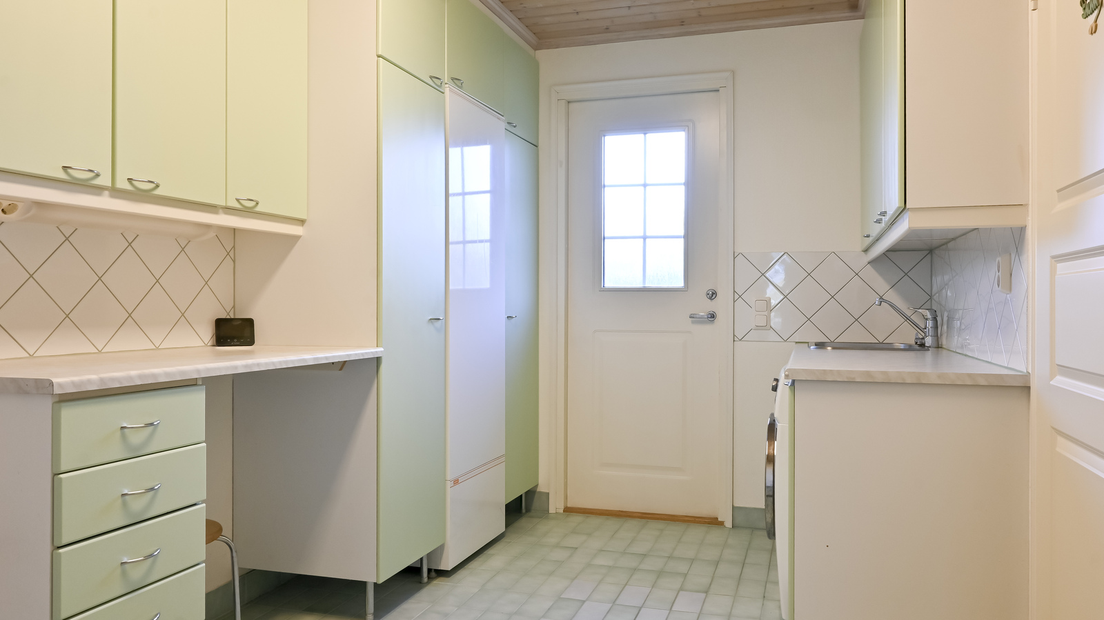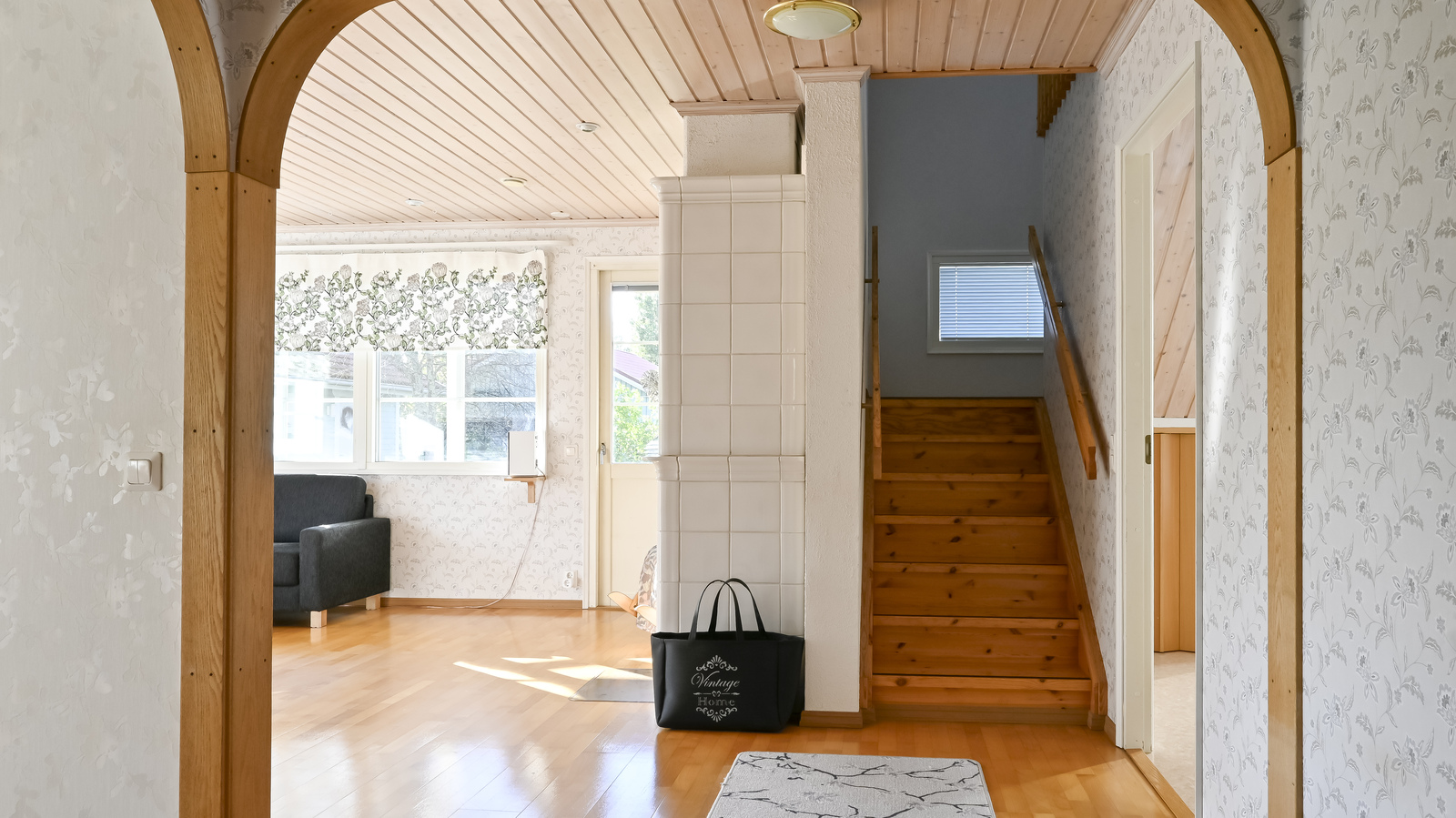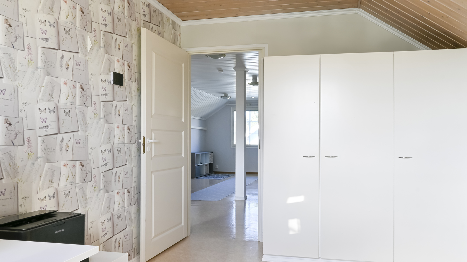 Kodin alakerrasta löytyy valoisa olohuone, erillinen makuuhuone, käytännöllinen keittiö, tilava kodinhoitohuone sekä saunaosasto ja erillinen wc. Yläkerta tarjoaa omaa rauhaa perheen makuutiloille kolme makuuhuonetta, käytännöllinen aula, kaksi vaatehuonetta ja kylpyhuone tekevät arjesta sujuvaa ja mukavaa.