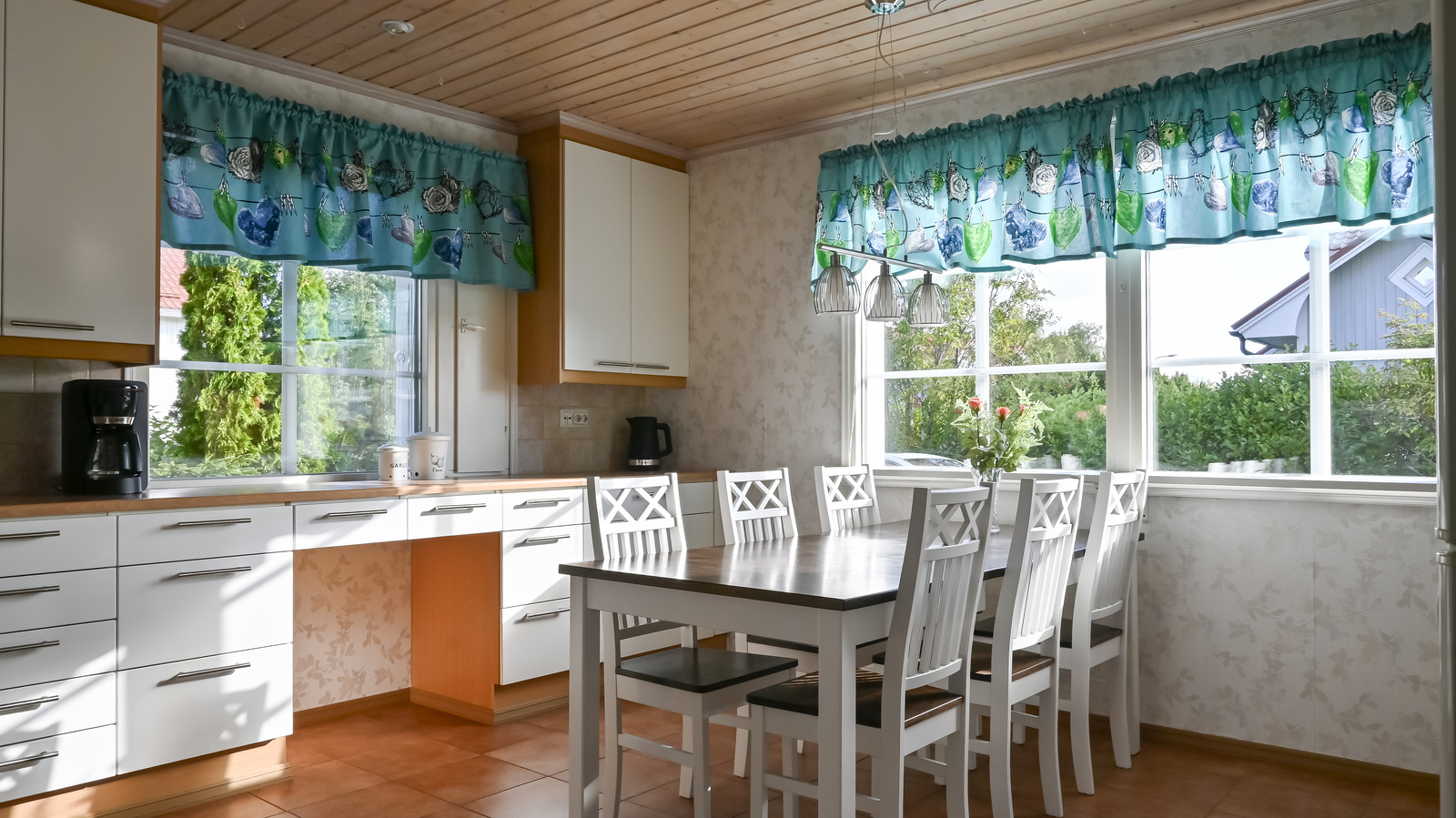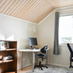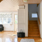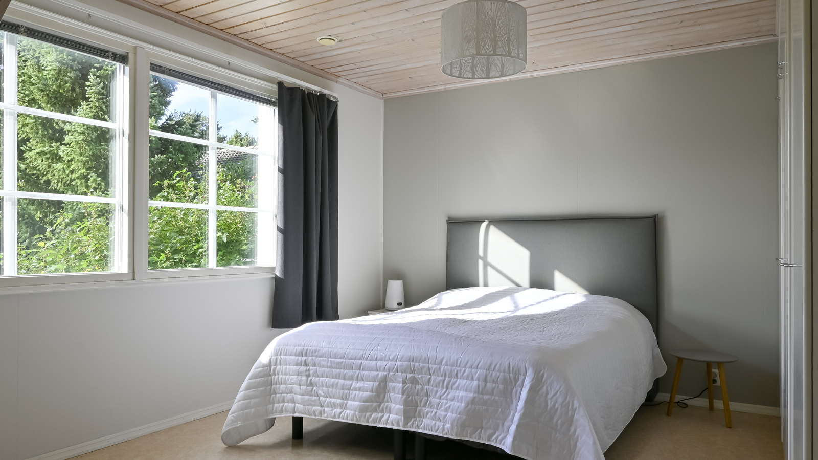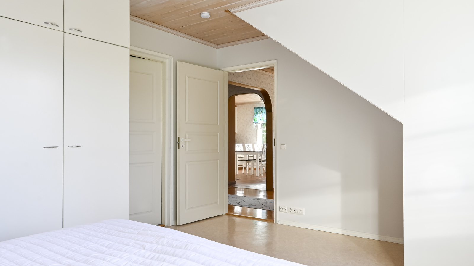 I nedre våningen finns ett ljust vardagsrum, separat sovrum och praktiskt kök samt rymlig groventré/tvättstuga dessutom finns en bastuavdelning och separat wc. I övre våningen finns tre sovrum, samt en praktisk hall, två klädrum och ett badrum som gör vardagen smidig och bekväm.