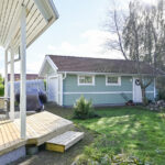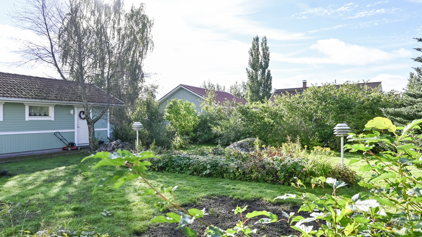 Gården är skyddad och inbjuder till trivsel. På gården finns en lekstuga för barnen samt ett uppvärmt garage/förråd som erbjuder gott om förvaringsutrymme och möjligheter till hobbyverksamhet. Konditiongranskad 10/2025.